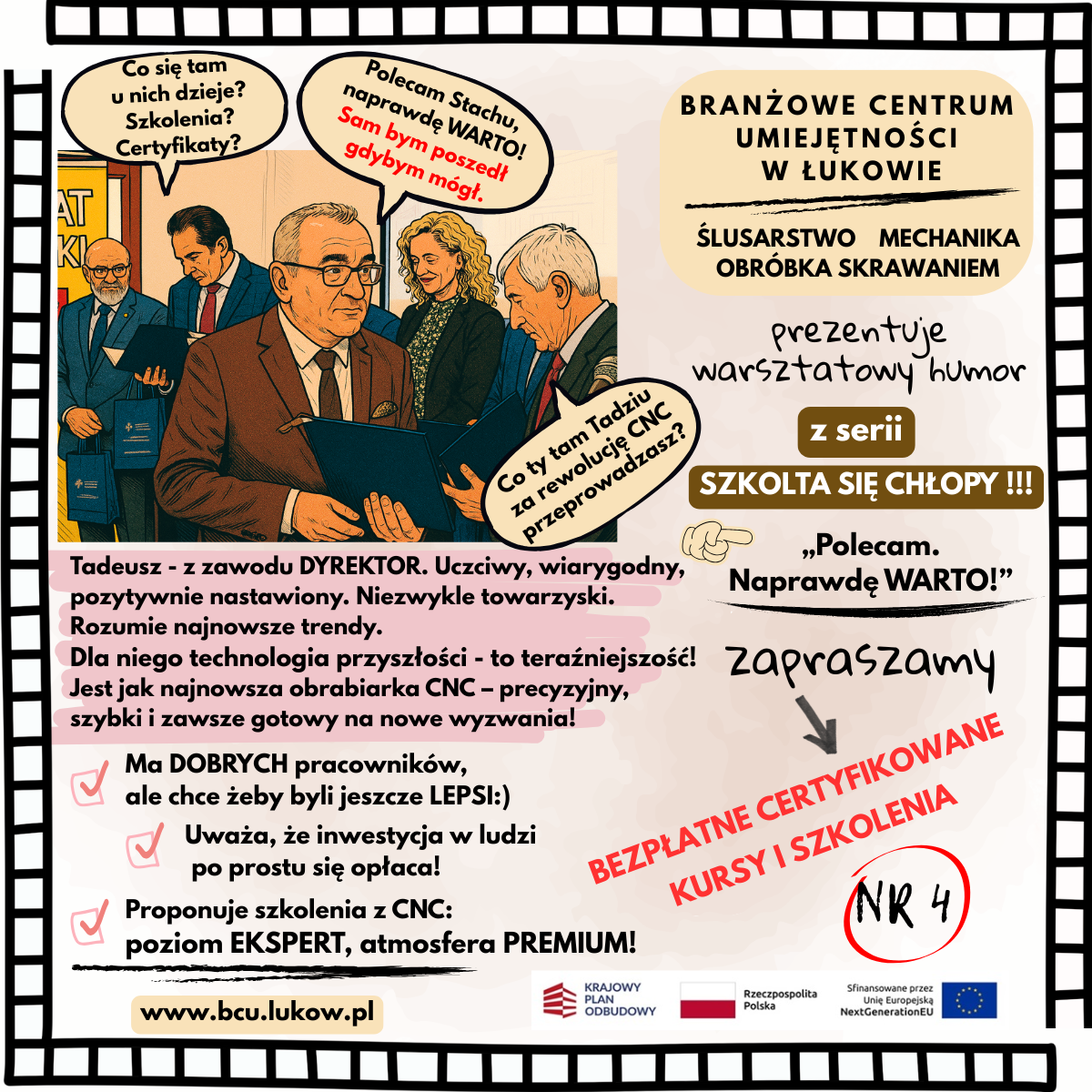 Branżowe Centrum Umiejętności w Łukowie zaprasza osoby powyżej 25. roku życia na najbliższy BEZPŁATNY kurs, który zakończy się uzyskaniem certyfikatu!