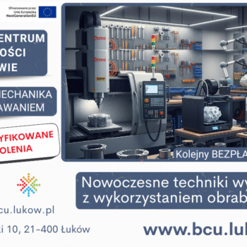 W Branżowym Centrum Umiejętności w Łukowie zakończył się 120-godzinny kurs pt. „Nowoczesne techniki wytwarzania z wykorzystaniem obrabiarek CNC”. Uczestnicy zdobyli wszechstronną wiedzę i praktyczne umiejętności niezbędne w branży produkcyjnej. Główne obszary tematyczne kursu: Kursanci rozpoczęli od podstaw, poznając materiały… Czytaj dalej »