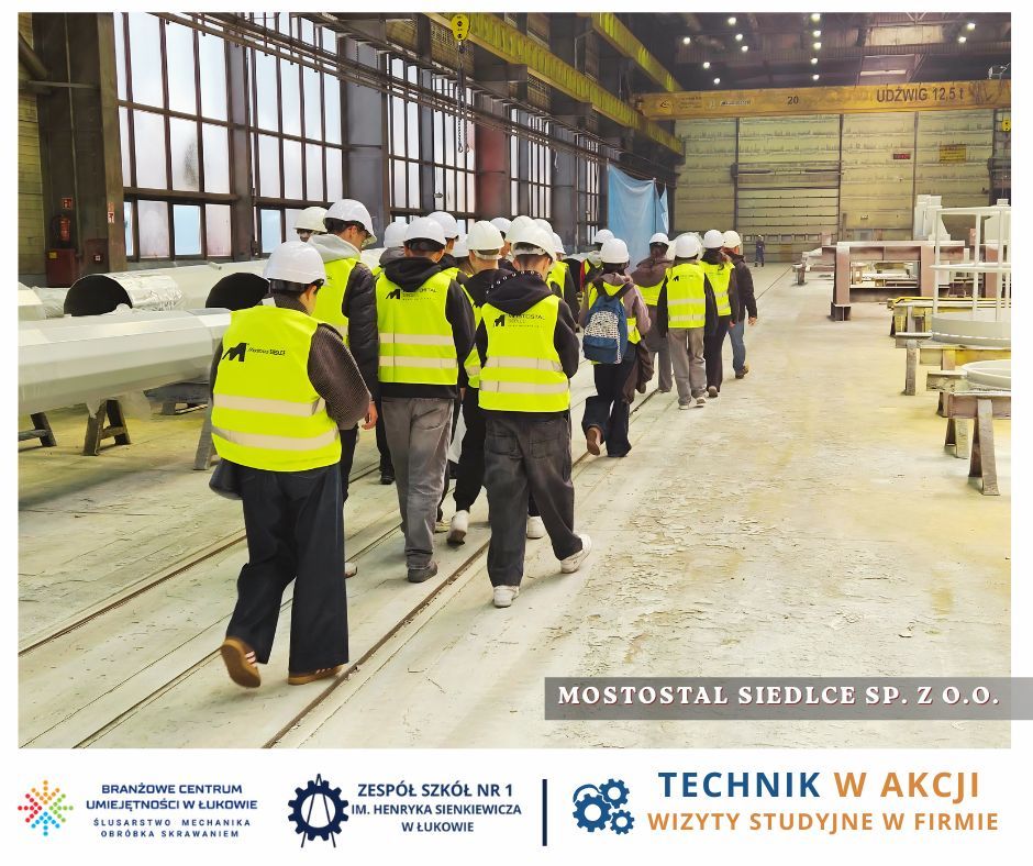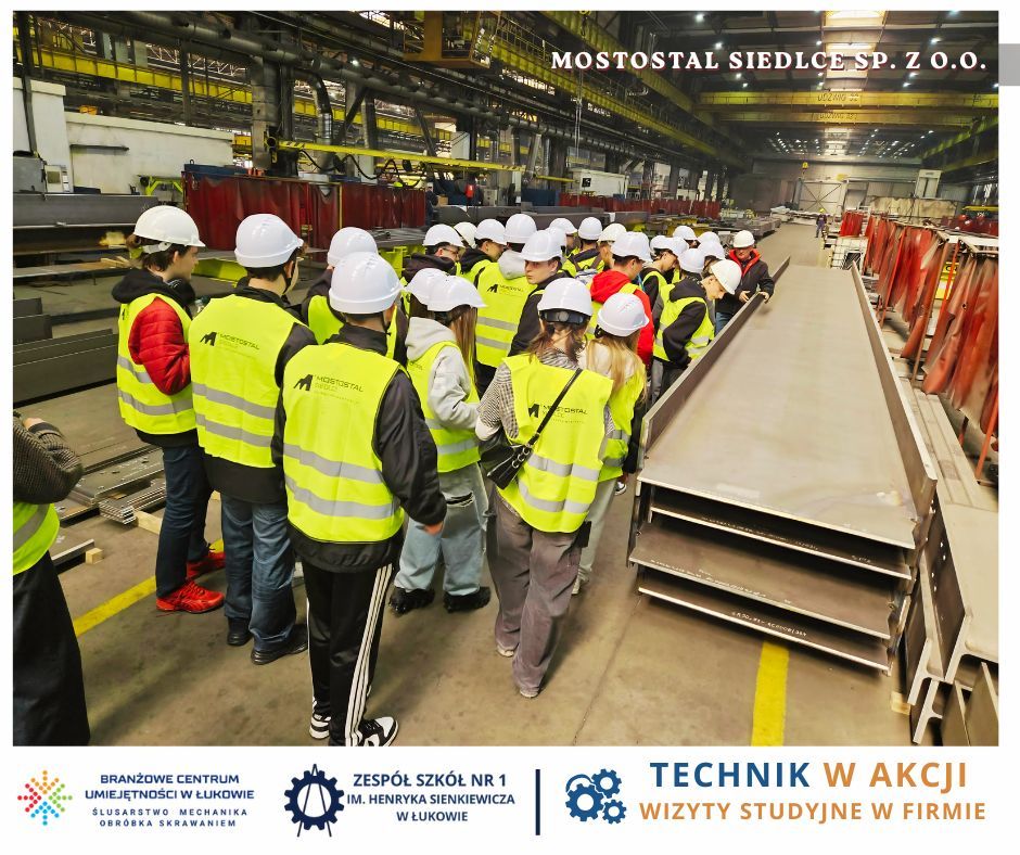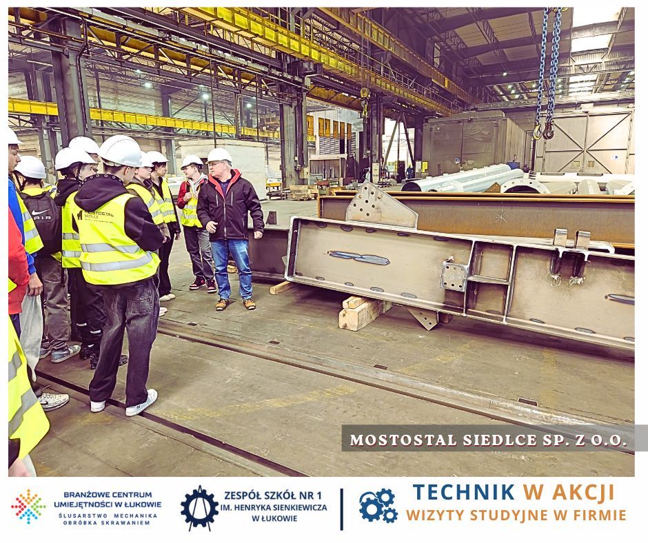 Jesteśmy przekonani, że wizyta w firmie Mostostal Siedlce to dla uczniów cenne doświadczenie, wspierające rozwój kompetencji technicznych i zawodowych, a także inspiracje do świadomego planowania ścieżki edukacyjno-zawodowej.