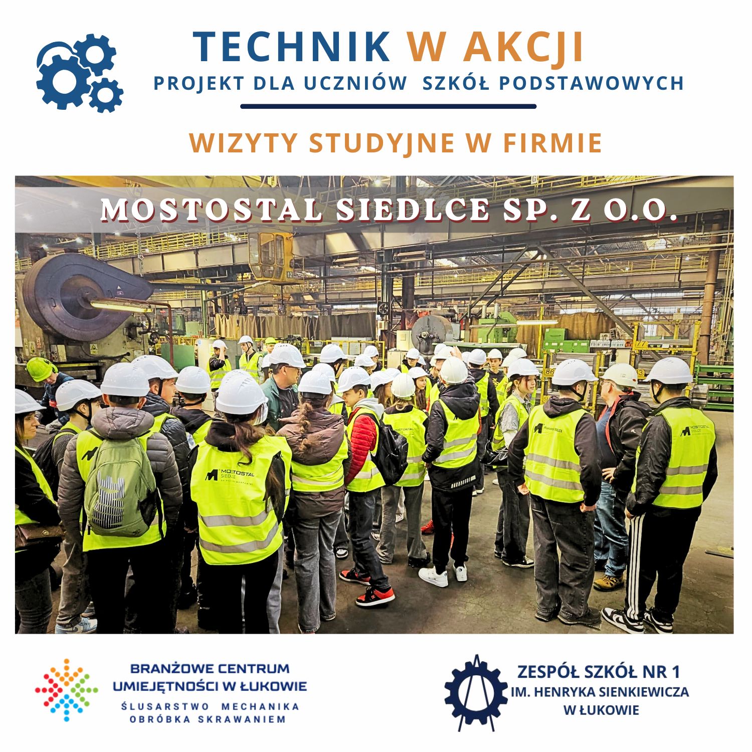 Z przyjemnością informujemy, że firma Mostostal Siedlce Sp. z o.o. dołączyła do grona przedsiębiorstw współpracujących z Branżowym Centrum Umiejętności w Łukowie w ramach projektu „Technik w Akcji”.