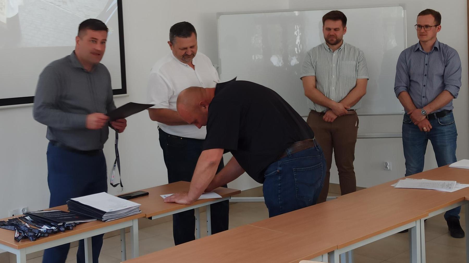 27 lutego w budynku naszego BCU odbyło się posiedzenie Powiatowej Rady Rynku Pracy na czele z przewodniczącym Rady Wicestarostą Łukowskim p. Januszem Koziołem. Podczas posiedzenia członkowie Rady wyłonili swojego przedstawiciela do Rady Branżowego Centrum Umiejętności (został nim p. Władysław Karaś), obejrzeli wyremontowane budynki BCU oraz zakupiony sprzęt. Zapoznali się też bliżej z koncepcją działania BCU w Łukowie oraz zadeklarowali chęć współpracy z naszą placówką.