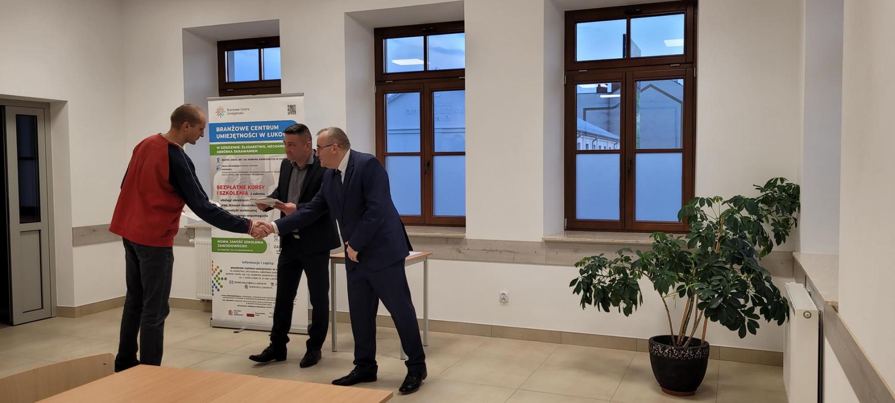 27 lutego w budynku naszego BCU odbyło się posiedzenie Powiatowej Rady Rynku Pracy na czele z przewodniczącym Rady Wicestarostą Łukowskim p. Januszem Koziołem. Podczas posiedzenia członkowie Rady wyłonili swojego przedstawiciela do Rady Branżowego Centrum Umiejętności (został nim p. Władysław Karaś), obejrzeli wyremontowane budynki BCU oraz zakupiony sprzęt. Zapoznali się też bliżej z koncepcją działania BCU w Łukowie oraz zadeklarowali chęć współpracy z naszą placówką.