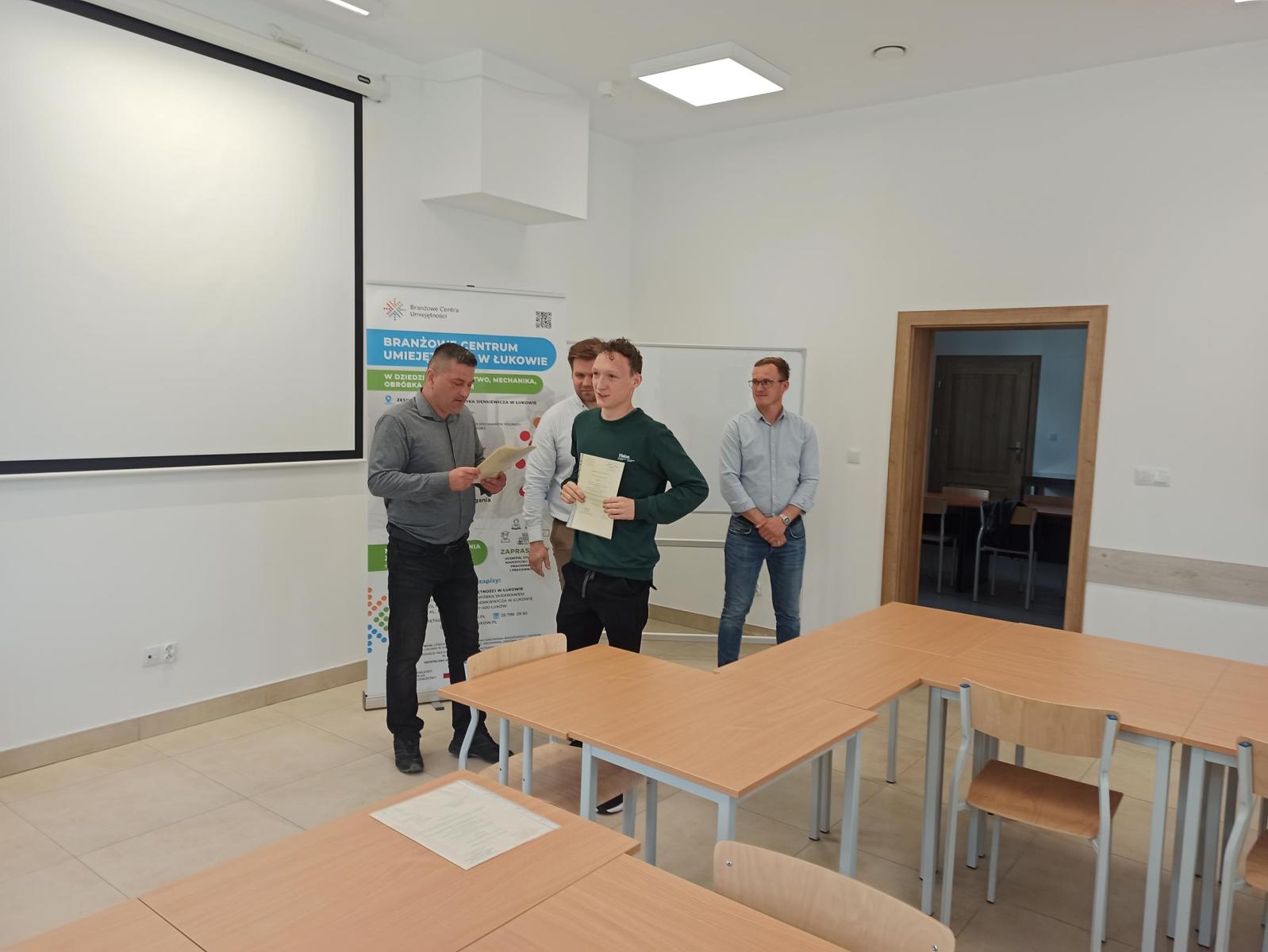 27 lutego w budynku naszego BCU odbyło się posiedzenie Powiatowej Rady Rynku Pracy na czele z przewodniczącym Rady Wicestarostą Łukowskim p. Januszem Koziołem. Podczas posiedzenia członkowie Rady wyłonili swojego przedstawiciela do Rady Branżowego Centrum Umiejętności (został nim p. Władysław Karaś), obejrzeli wyremontowane budynki BCU oraz zakupiony sprzęt. Zapoznali się też bliżej z koncepcją działania BCU w Łukowie oraz zadeklarowali chęć współpracy z naszą placówką.