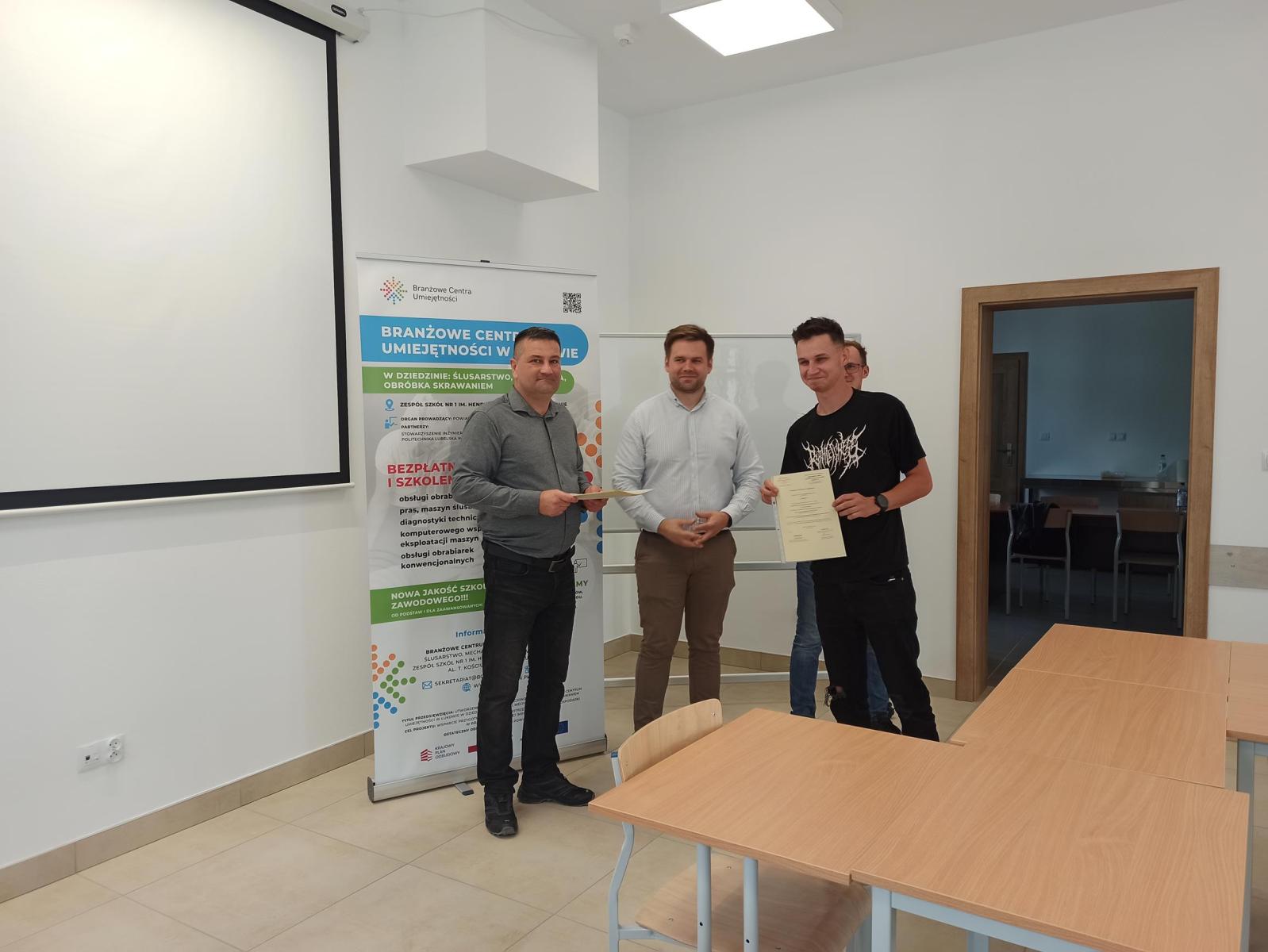 27 lutego w budynku naszego BCU odbyło się posiedzenie Powiatowej Rady Rynku Pracy na czele z przewodniczącym Rady Wicestarostą Łukowskim p. Januszem Koziołem. Podczas posiedzenia członkowie Rady wyłonili swojego przedstawiciela do Rady Branżowego Centrum Umiejętności (został nim p. Władysław Karaś), obejrzeli wyremontowane budynki BCU oraz zakupiony sprzęt. Zapoznali się też bliżej z koncepcją działania BCU w Łukowie oraz zadeklarowali chęć współpracy z naszą placówką.