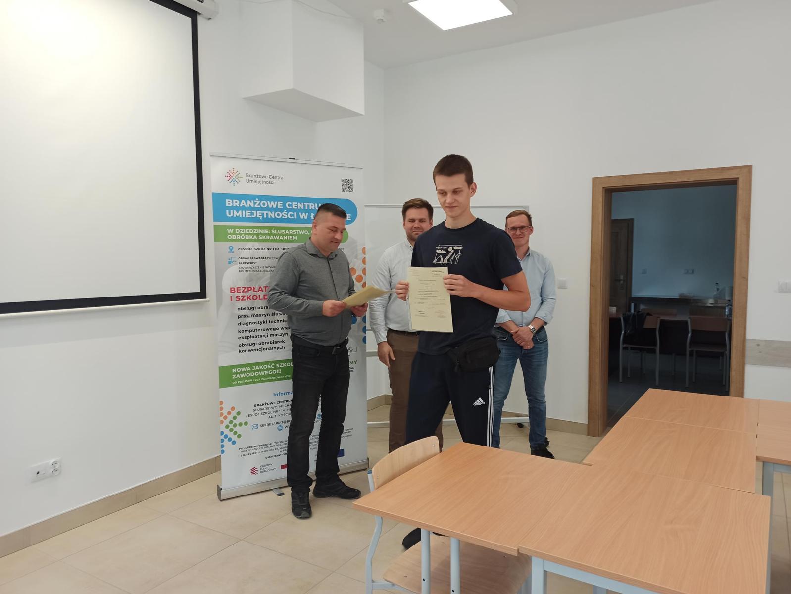 27 lutego w budynku naszego BCU odbyło się posiedzenie Powiatowej Rady Rynku Pracy na czele z przewodniczącym Rady Wicestarostą Łukowskim p. Januszem Koziołem. Podczas posiedzenia członkowie Rady wyłonili swojego przedstawiciela do Rady Branżowego Centrum Umiejętności (został nim p. Władysław Karaś), obejrzeli wyremontowane budynki BCU oraz zakupiony sprzęt. Zapoznali się też bliżej z koncepcją działania BCU w Łukowie oraz zadeklarowali chęć współpracy z naszą placówką.