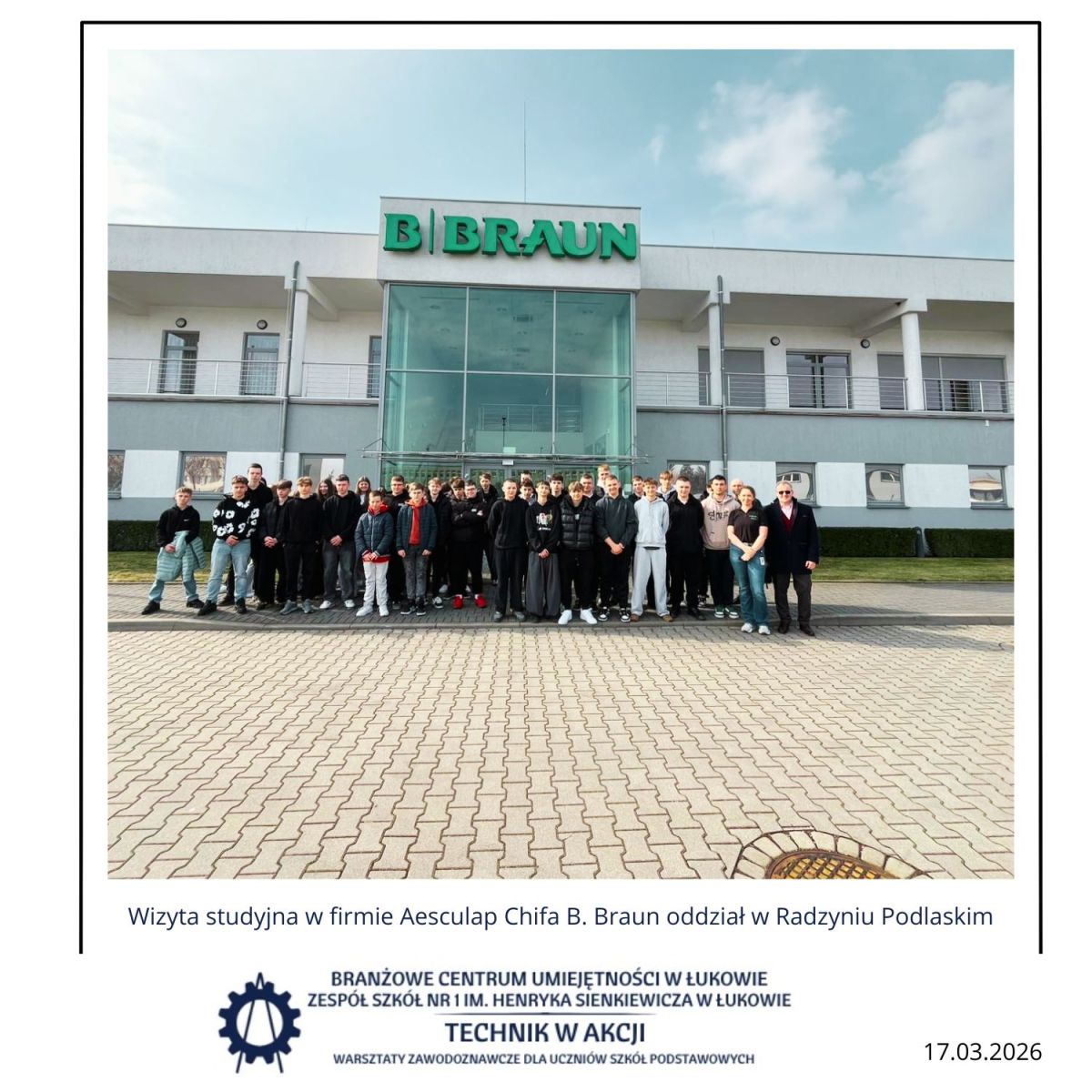 17 marca 2026 r. uczniowie Zespołu Szkół w Gręzówce uczestniczyli w wizycie studyjnej w firmie Aesculap Chifa B. Braun. Podczas spotkania młodzież zapoznała się z zaawansowanymi procesami produkcji wyrobów medycznych, ze szczególnym uwzględnieniem znaczenia precyzji technologicznej, bezpieczeństwa procesów oraz innowacyjnych rozwiązań stosowanych w nowoczesnym przemyśle.