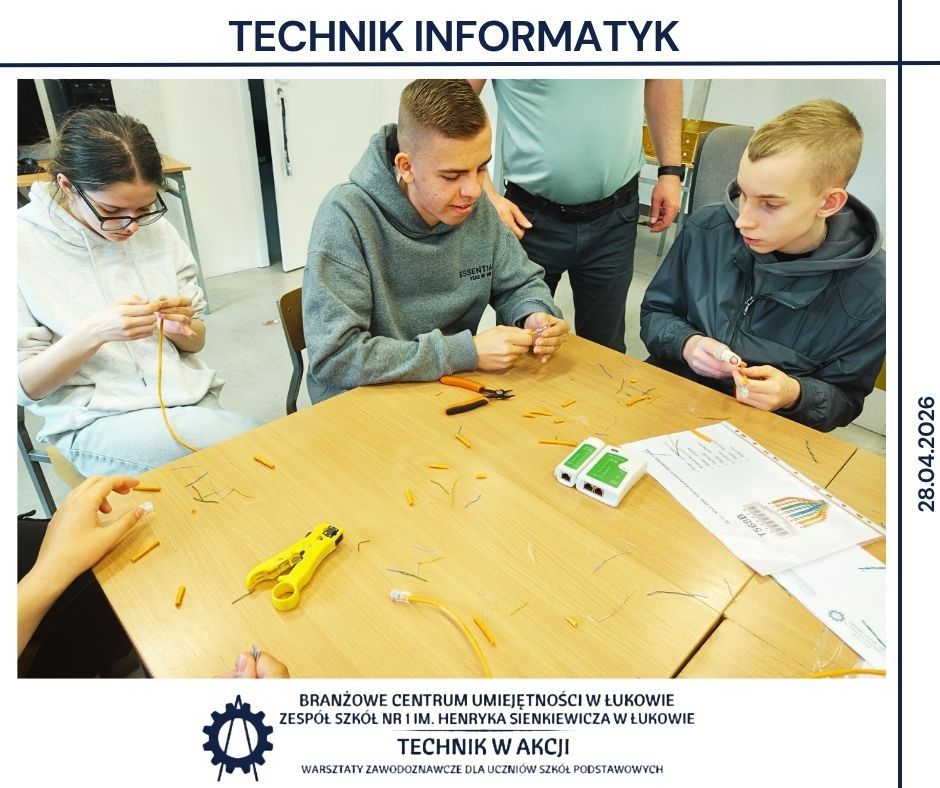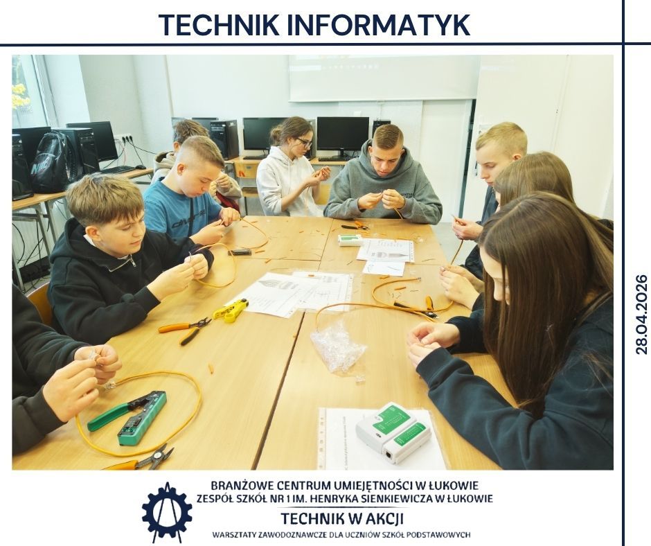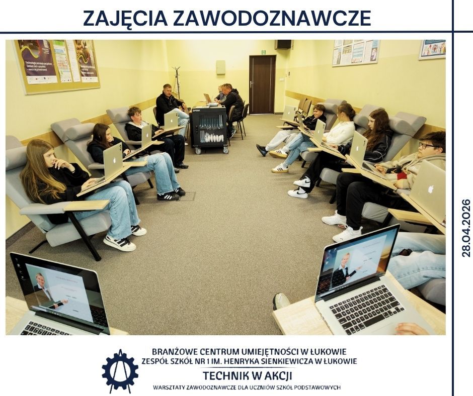 28 kwietnia Branżowe Centrum Umiejętności w Łukowie oraz Zespół Szkół Nr 1 w Łukowie ponownie stały się przestrzenią spotkania młodzieży z praktyką zawodową 👩🔧👨💻. Tym razem w warsztatach zawodoznawczych uczestniczyło ponad 60 uczniów z Zespołu Szkolno–Przedszkolnego w Dębowicy oraz Zespołu Szkół w Tuchowiczu, którzy mieli okazję sprawdzić, jak w rzeczywistości wygląda świat nowoczesnych zawodów technicznych ⚙️.