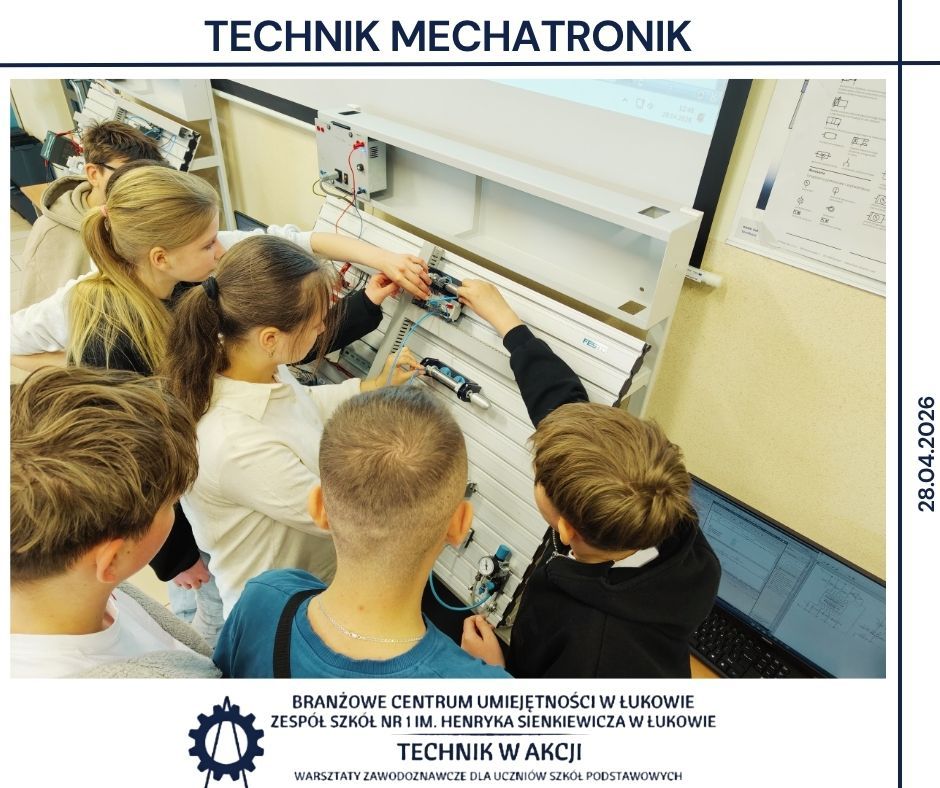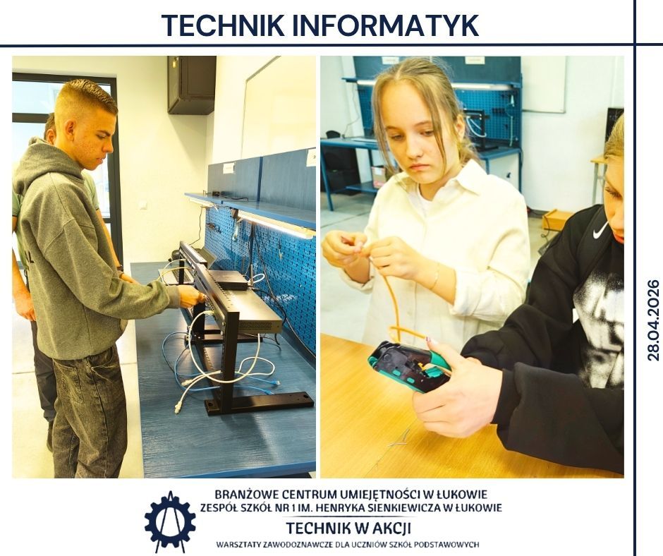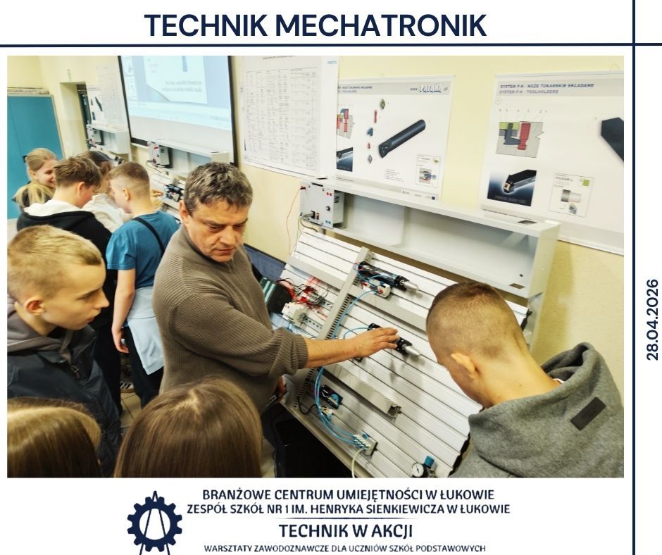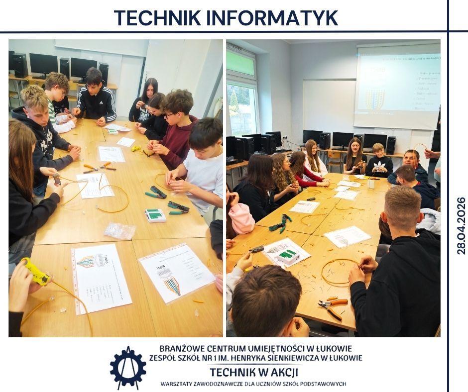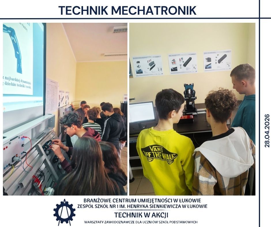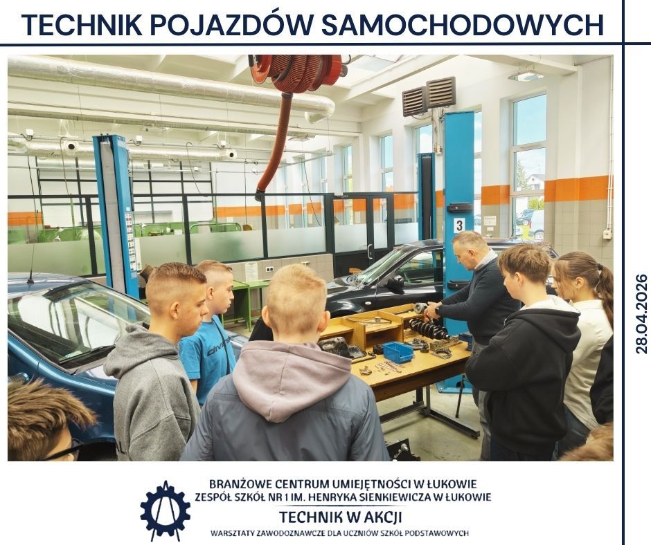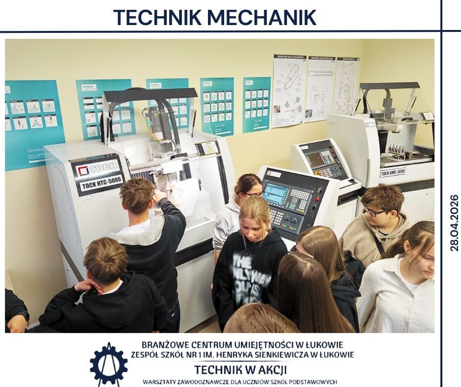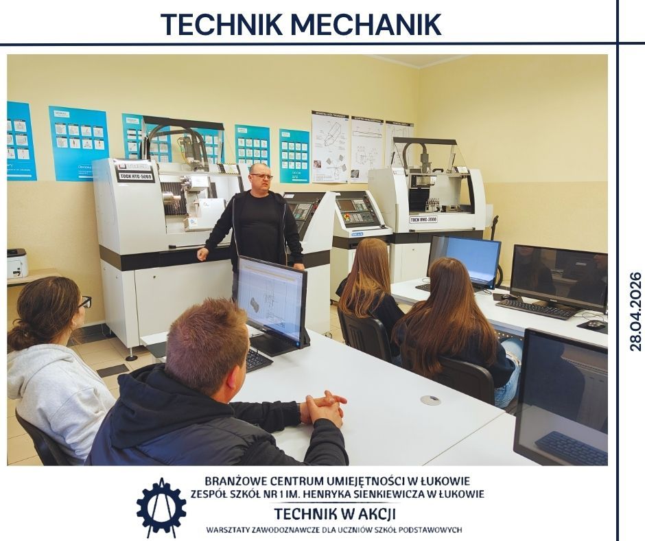 Kolejnym etapem były warsztaty realizowane w BCU oraz w Zespole Szkół Nr 1 w Łukowie 🏫. Uczniowie pracowali w różnych pracowniach, poznając specyfikę takich obszarów jak mechanika, CNC, mechatronika, elektryka, motoryzacja, informatyka oraz ekonomia 🔌💻. Wykonywali zadania o charakterze praktycznym, pracowali z dokumentacją techniczną 📄 oraz poznawali podstawowe procedury stosowane w poszczególnych obszarach zawodowych.