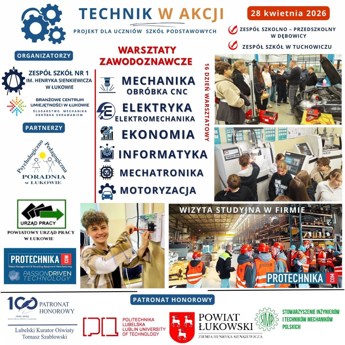 Projekt, objęty patronatem Lubelskiego Kuratora Oświaty, Politechniki Lubelskiej, Starostwa Powiatowego w Łukowie oraz Stowarzyszenia Inżynierów i Techników Mechaników Polskich 🏛️, stanowi przykład efektywnej współpracy edukacji z otoczeniem społeczno-gospodarczym.