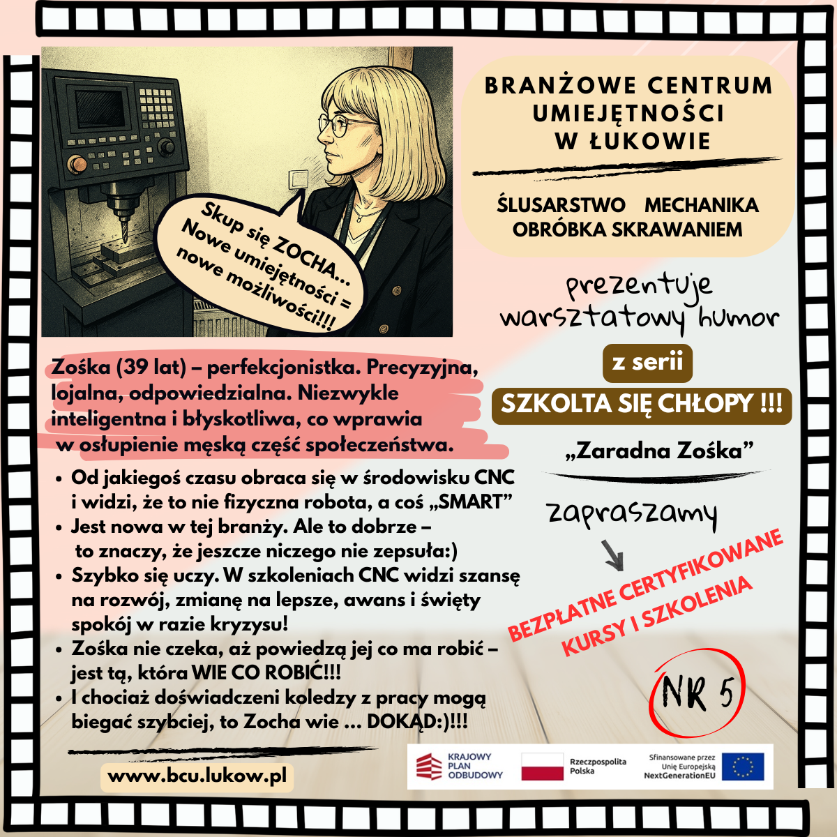 WARSZTATOWY HUMOR z serii „SZKOLTA SIĘ CHŁOPY” – 5. „Zaradna Zośka” Drogie Panie! Czas przejąć stery… numeryczne!