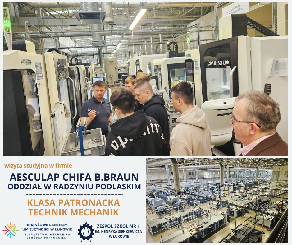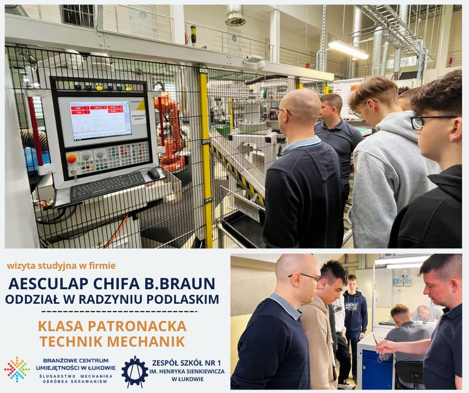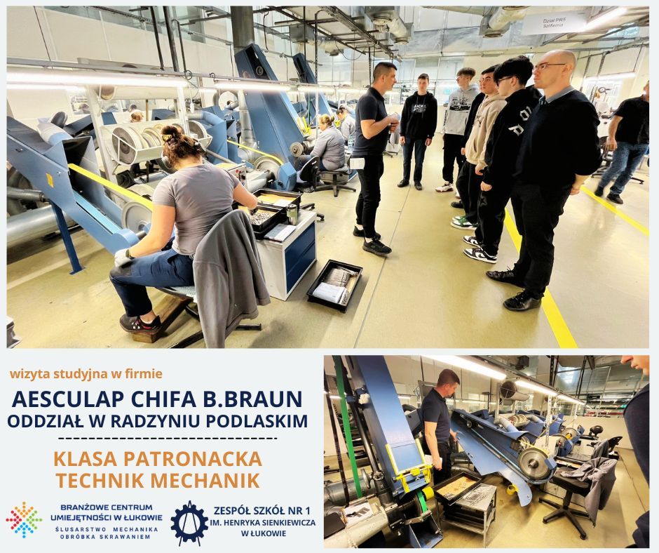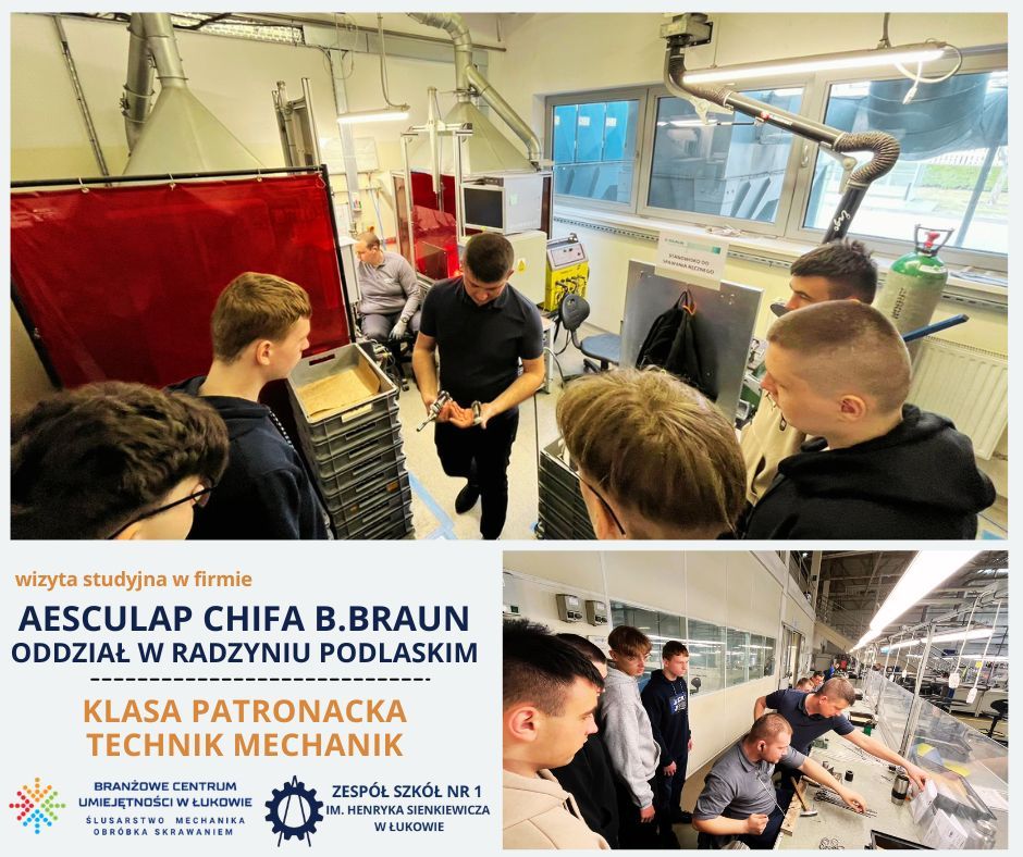 Uczniowie klasy patronackiej Branżowego Centrum Umiejętności w Łukowie, kształcący się w zawodzie technik mechanik, odbyli wizytę studyjną w zakładzie produkcyjnym Aesculap Chifa Sp. z o.o., należącym do międzynarodowej grupy B. Braun, oddział w Radzyniu Podlaskim.